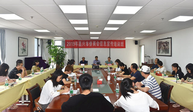 7月18日,省侨商会、嘉兴市侨商会联合举办的2019年信息宣传培训班在嘉兴市维高精工有限公司正式开班,嘉兴市委统战部副部长、市侨联主席章一川,市侨商会执行会长、浙江依爱夫游戏装文化产业有限公司董事长汪维佳与信息联络员座谈交流。