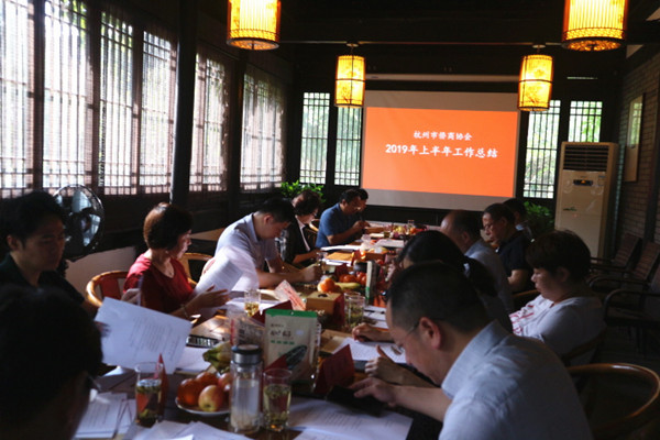 丁德坤执行会长作市侨商会2019年上半年工作总结。他指出,上半年,侨商会工作始终围绕为会员企业服务的宗旨全面展开工作,活动内容丰富、时代感强、涵盖面广、可圈可点。青年委员会的筹备工作有条不紊,取得了积极进展,目前已发展了42名青年侨商成为青委会成员人选。他希望青年侨商们不忘初心、牢记使命,永怀感恩之心,在杭州市侨商会的温馨大家庭里共享、共创、互利互赢、勇于创新、不断进取,以优异的成绩回报祖国,共祝祖国建国70华诞。