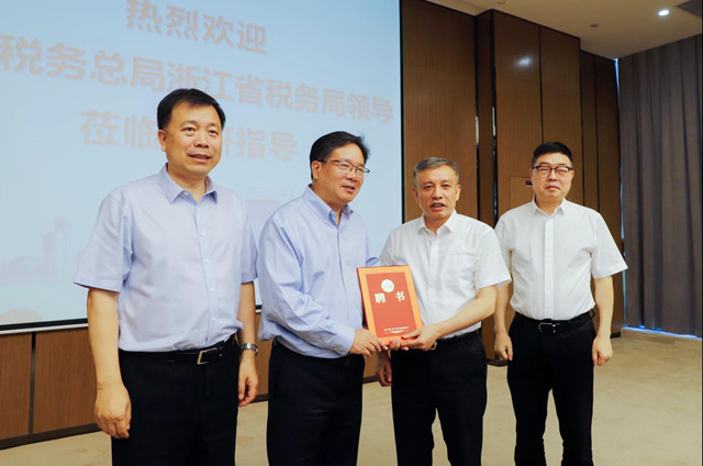 在张振丰书记和祝振伟书记的见证下,龙岳辉书记为丁列明博士颁发了浙江省税务局减税降费特邀监督员聘书,并要求税务部门虚心听取监督意见,做到件件有落实、事事有回音,共同促进减税降费政策落地生根。