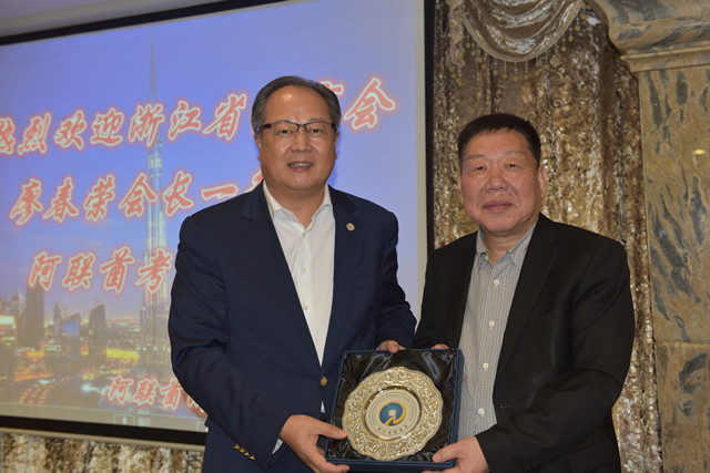 侨商代表团与阿联酋浙江侨团联合会会长团成员合影