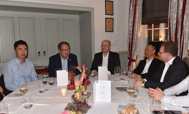 在德国慕尼黑,廖春荣会长一行拜访了德国EUT0T集团董事长兼首席执行官Kiemens Joos博士,宾主就有关合作项目进行了友好交流和洽谈。Kiemens Joos博士曾于2017年5月来杭州参加由江南体育app下载安卓 、澳门浙商联合会携手跨国资本平台沄柏资本举办的“一带一路”通往欧洲的桥梁—中德协同(杭州)峰会。当他回忆起带领EUT0T团队在峰会上项目路演和演讲的情景时激动地说,中德协同(杭州)峰会十分难忘,有幸认识了江南体育app下载安卓 会长廖春荣先生,并与副会长、沄柏资本董事长鲍毅先生合作取得了很好成果。廖春荣会长说,此次来德国能见到好朋友非常高兴。德国作为世界工业强国之一,先进科技和高端制造工艺技术将对中国的产业升级起到积极的推动作用。他希望EUT0T集团进一步为中德两国企业间交流和合作牵线搭桥,实现共同发展,打造共赢的局面。廖春荣会长还以澳门浙商联合会会长名义,邀请Kiemens Joos博士在方便时访问中国澳门特别行政区。Kiemens Joos博士愉快地接受了邀请。在慕尼黑,廖春荣会长一行还考察了宝马公司,听取了相关负责人对公司发展情况介绍,并就有关问题进行了交流和洽谈。