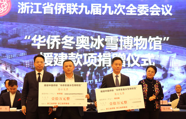 1月17日,浙江省侨联九届九次全委会上举行了“华侨冬奥冰雪博物馆”援建款项捐赠仪式,宁波市侨商会执行会长傅旭敏捐赠10万元援建华侨冬奥冰雪博物馆。
