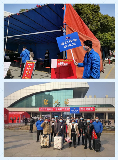 海虹印染公司还充分利用人社局的专列、集中包车等多种方式,将外地员工接回,目前员工返岗率超过75%,产能恢复率达到80%。(徐炎法)