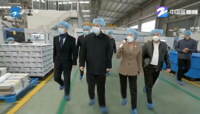 2月27日,浙江省委副书记、省长袁家军一行莅临台州市侨商会会员单位——台州富岭塑胶有限公司,调研疫情防控和复工复产工作。