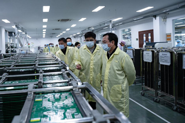 朱法传一行听取了王一鸣董关于公司目前采取的疫情防控措施以及现逆变器生产经营情况介绍,实地查看了锦浪科技的一线车间,详细询问了疫情防控措施落实、人员到岗、达产达效、一线职工防护、企业经营情况等有关情况,对细节管控再三叮嘱,并对锦浪在当前抗疫严峻形势下,第一时间能顺利复工给予了高度肯定。