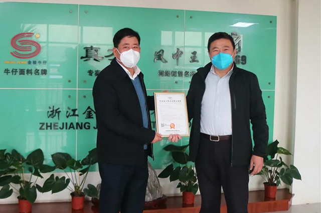 近日,金华市贸促会副会长陆献龙一行到金华市侨商会理事、浙江金梭纺织有限公司董事长童福友颁发了金华首张国际认可的《中国出口商品品牌证明书》。这张证明书充分展示了企业的“硬核”和品牌的影响力。