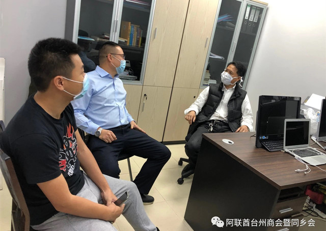 走访中,李选表达了台州各级领导对各位侨商在家乡抗疫狙击战中捐助防疫物资的谢意;传递了浙江省涉侨部门对海外侨胞疫情防控的有关要求;通报了阿国有关防疫的措施和规定;并有针对性地做好思想工作,勉励大家增强信心、团结协力、共渡难关。(吴煊)