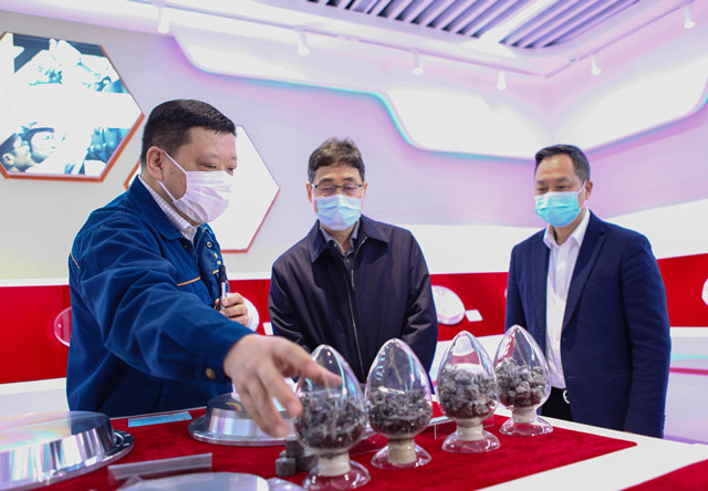 随后,徐宇宁书记一行参观了公司产品展厅、生产现场以及超级双两千和超大规格HIP安装现场,还近距离参观了公司自主研发生产的各种超高纯金属及溅射靶材产品,在行业内处于世界领先水平的靶材智能加工生产线和“国宝级”的大型设备。