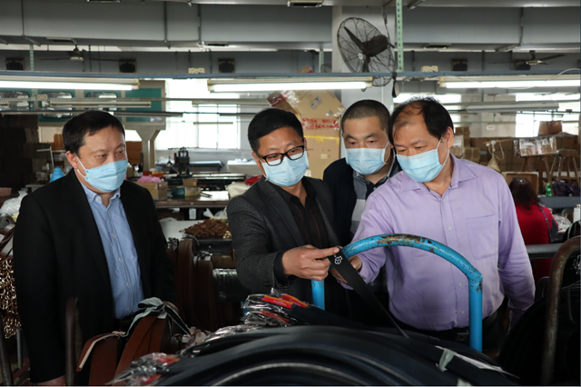 4月15日,鲍式谦一行赴美联家俬有限公司、温州伟林皮件有限公司,实地查看企业生产车间并与企业负责人面对面交谈,详细询问企业市场销售、科研创新、安全生产等情况,了解企业目前实际困难和诉求,鲍式谦鼓励企业要树立发展信心,运用现代化生产手段,抢抓发展机遇,将企业做大、做强。本次走访,鲍式谦牵头联系了中国工商银行北白象支行行长同行,旨在帮助企业更好的对接金融、政策、资源等相关支持,为企业复工复产“输血减压”,鼓励企业进一步坚定信心,实现平稳发展。