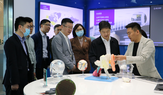 在诺尔康总经理李楚、首席技术官周道民的陪同下,徐局长参观了展厅及生产车间。参观中,徐局长详细咨询了产品工作原理。当得知公司为2015年国家科技进步二等奖获得者,且产品售价不到进口产品的一半时,徐局长点头称赞:“能获得这项荣誉不容易,诺尔康实力不凡,是听障患者的福音。”