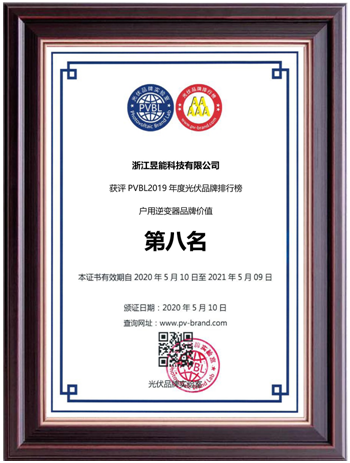 5月10日,第五届世纪光伏大会暨“PVBL2019年度光伏品牌排行榜发布盛典”在云上举行。浙江昱能科技有限公司凭借出色的产品创新能力及品牌影响力,获评“PLBV2019年度光伏品牌排行榜—户用逆变器品牌前十强”。