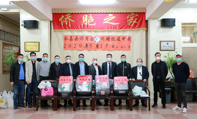 5月17日,永嘉县侨商会通过法国华侨华人会向旅法侨界、留学生捐赠抗疫中药。永嘉县侨商会会长林正益、执行会长陈明华、常务副会长孙成章等参加了捐赠仪式,法国华侨华人会主席任俐敏、执行主席金麟泽等也来到了捐赠现场帮助分发抗疫物资。