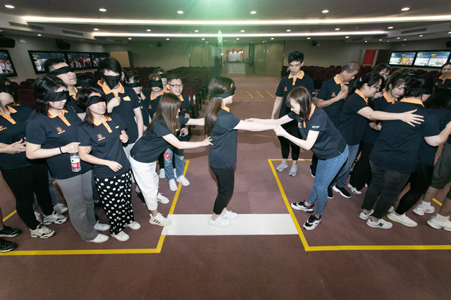 第一个项目“变形金刚”是对参与者智力、体力、耐力的考验;第二个项目“V+销售王”,不仅融合了时下最新的销售方式,更是在游戏中结合了自己的品牌,对个人专业能力也是一个极大的考验;第三个项目“画画接龙”是对大家在工作中沟通交流、即兴应变能力的提升;第四个“四点一线”是体力、智慧的结合,把全场的气氛推向了高潮。