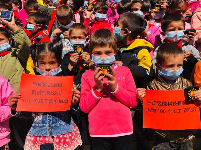 近日,侨企浙江昱能科技有限公司向新疆塔合曼乡寄宿制小学捐赠100个便携式LED太阳能照明灯,并举行捐赠仪式。