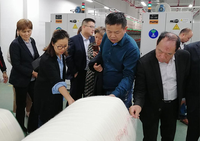 随后,考察团一行前往宁波康赛妮集团有限公司参观考察。康赛妮集团公司是一家专业从事高档毛纺产品的中国制造业单项冠军示范企业和国家特色企业,经过近二十年的发展,现已基本形成集染色、精纺、花式纺、进出口贸易、数字化物流、智能制造、信息化平台于一体的绿色先进制造业产业基地。考察团先后参观了公司粗纺、精纺、半精纺以及正在建设中的无人智慧生产车间。康赛妮集团公司总裁助理殷小锋向考察团介绍了公司生产发展现状以及公司积极响应国家“双循环”号召,努力开拓国内市场,着力打造守法经营、回馈社会的优秀侨商企业。