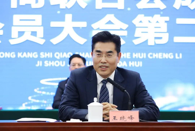 王晓峰为永康市侨商联合会授牌,并对永康侨商联合会的成立以及首届班子的产生表示热烈的祝贺。他指出,广大侨商在助力抗击疫情、复工复产、境外防疫等方面有力有为,在安侨暖侨稳侨等方面作出了突出贡献。他希望广大侨商厚植爱国爱乡情怀,胸怀“两个大局”,坚定信心,迎难而上,把自身的事业做优做强,积极投身家乡的经济社会建设;希望永康市侨商联合会坚定政治立场,发挥好党委政府和侨商之间的桥梁纽带作用,积极反映侨商诉求,维护侨商的正当合法权益,并组织引导广大侨商利用自身的独特优势,讲好中国故事、浙江故事、永康故事,助力构建"双循环”新格局。同时要加强自身建设,规范内部管理,使之成为具有号召力、凝聚力和影响力的侨商组织。