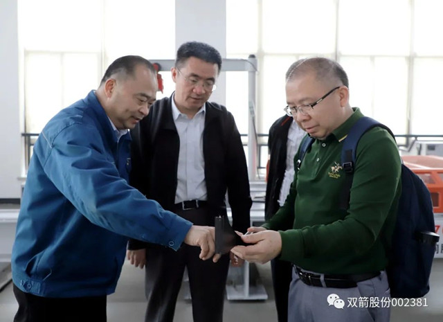 沈耿亮对王峰一行的到来表示热烈欢迎,对各级领导长期以来对双箭股份的关心和支持表示感谢。在他的陪同下,王峰一行参观了公司研发中心,高度评价了双箭股份在生产、管理、养老等方面展现出来的先进性、规范性和前瞻性。