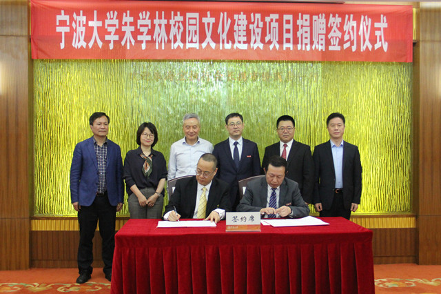 近日,宁波大学朱学林校园文化建设项目签约仪式在宁波大学举行。宁波市委统战部副部长、侨办主任顾正为,市侨联副主席鲁爱丽,镇海区委常统战部部长唐东海,镇海区侨联主席王丁盛等出席了签约仪式。