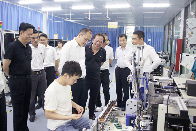6月2日,嘉兴市委常委、嘉善县委书记洪湖鹏一行到嘉兴市侨商会常务副会长单位——浙江田中精机股份有限公司参观考察,嘉善县人大常委会主任郑明,县委常委、姚庄镇党委书记曹惠明,田中精机公司名誉董事长钱承林、总经理张玉龙等全程陪同。