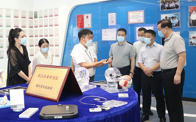 在诺尔康总经理李楚的陪同下,徐首红一行参观了诺尔康展厅及生产车间,了解了人工耳蜗等神经刺激类产品的工作原理及生产过程,参观了可靠性实验室,见证产品安全性、可靠性。
