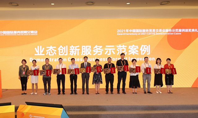 9月4日,2021年服贸会迎来了一项重磅活动。在商务部组织的服务示范案例颁奖典礼上,宁波市侨商会副会长单位---宁波全贸信息技术有限公司的“全球贸易通数字营销平台”项目荣获科技创新服务示范案例。