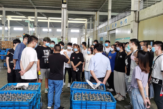 在企业负责人姜伟清的带领下,学生们有序参观了企业的一线生产车间、装配车间和展陈馆。