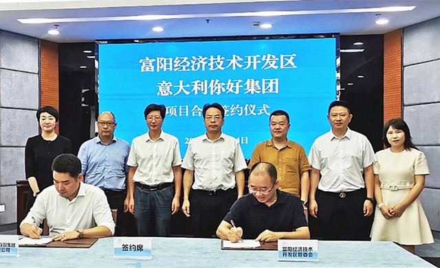 近日,丽水市侨商会会员企业---意大利你好集团和杭州市富阳经济技术开发区正式签约。根据协议,你好集团将投资2亿元人民币在银湖科技城建设全球总部大楼项目。丽水市侨商会执行常务副会长、意大利你好集团董事长叶建毅和富阳经济技术开发区管委会常务副主任陈悦,代表双方签署战略合作协议。浙江省侨联党组书记、主席连小敏,富阳区委常委、统战部部长陈平出席签约仪式并讲话。