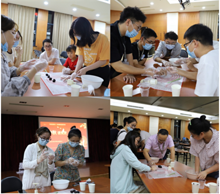 随后,便开始了“话中秋”活动,分小组合作制作冰皮月饼。和面——揉团——包馅——脱模——印花——包装,做完全流程,一个精美的冰皮月饼就制作完成啦。大家互帮互助,小心翼翼捧着月饼比好看的模样,才知少年之心从未泯,这也是对生活的一种热爱,普通而平凡的幸福。