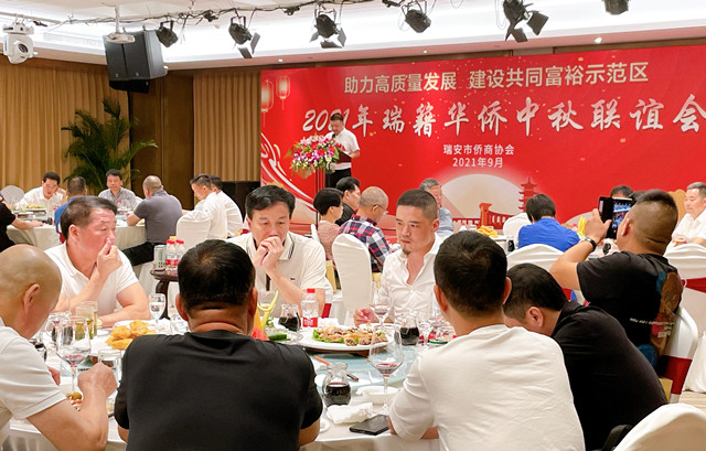 月亮未圆情先至,中秋团聚共话富裕。9月16日晚,瑞安市侨商会在在瑞安国际大酒店举办以“助力高质量发展·建设共同富裕示范区”为主题的迎中秋联谊会。市侨商会会员、兄弟协会和各界嘉宾欢聚一堂,共庆中秋佳节。