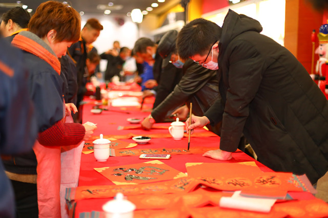 开明画院“春联万家”活动通过送春联的形式表达对基层员工们良好的新年祝愿,手写春联的传统,丰富和活跃了广大员工的精神文化生活,真正使人民群众得到文化实惠,为大家书写了2022新春年味儿第一篇,也为传承和发扬中华优秀传统文化作出了贡献。(王晓晓)