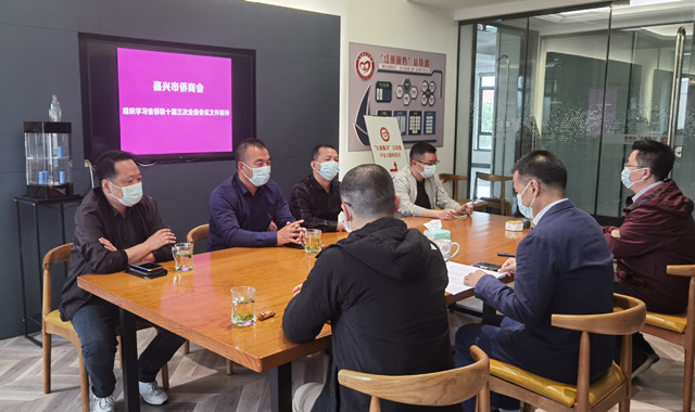 4月29日,嘉兴市侨商会在浙江汇信实业股份有限公司会议室召开专题学习会,传达学习浙江省侨联十届三次全委会议精神。会长戴其丰通过视频连线的方式参加会议并讲话;监事长蔡国伟、执行会长汪维佳通过线上参加会议;常务副会长蒋加伟、胡生,副会长朱旭峰、张叶凯,理事马忠伟等参加会议。会议由蒋加伟主持。