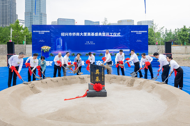 5月8日上午,绍兴市侨商大厦奠基典礼暨开工仪式在绍兴迪荡街道项目地块举行。浙江省委统战部副部长吴炳芳应邀出席奠基仪式并宣布项目开工,省侨联党组成员、副主席、一级巡视员张维仁讲话,绍兴市委常委、统战部部长叶卫红致辞。市委统战部副部长张小华主持仪式。市委统战部副部长、市侨联党组书记金海燕,越城区委常委、统战部部长钟建荣,市侨联副主席沈国等出席仪式;省侨商会副会长王关水、绍兴市侨商会会长骆越峰及侨商代表60余人参加活动。