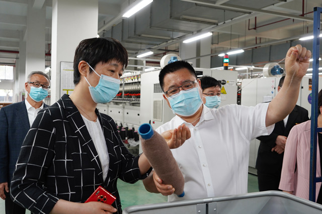 在康赛妮集团,宁波市侨商会会长、集团董事长总裁薛惊理陪同考察团一行先后参观了康赛妮未来工厂、粗纺厂和花式纱线厂。薛惊理详细介绍了智能工厂建设发展、生产计划、应用前景等情况,展示了毛纺行业全球首家智能化、信息化、数字化、无人黑灯工厂独特的生产工艺细节和流程。