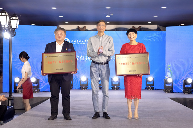 大赛中学生们为现场带来了精彩的走秀,精心准备的歌舞表演也展现了同学们多元的风采,大赛结束时,评委老师比赛中选手们的表现作了简短的点评。此次大赛为学子们提供了一个展示自己的平台与机会,充分展现出高中学子的青春与朝气。本次活动也是“教育共富”校企实践成果首秀,现场举行了“教育共富”校企实践中心的授牌仪式。自2021年 “院校企”虚拟订单签约仪式后,这一产教融合新样态在依爱夫和平湖市职业中专之间正式诞生。