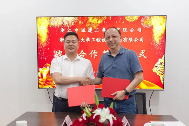 最近,台州市侨商会副会长单位中垭建设集团有限公司与浙江工业大学工程设计集团有限公司战略合作签约仪式在杭州举行。台州市侨商会副会长、中垭集团董事长徐孔森与浙工大设计集团党委书记兼总裁应义淼分别代表双方签署战略合作协议,标志着双方全面合作正式开启。
