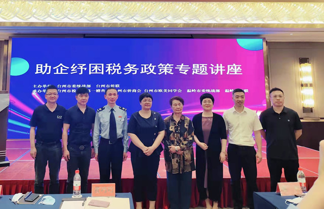 为认真落实中央、省、市稳住经济一揽子政策直达企业。最近,由台州市委统战部、市侨联主办的“助企纾困税务政策”专题讲座在温岭国际大酒店举行,邀请台州市税务局第一稽查局副局长林智作政策讲解。台州市侨联副主席黄巧巧,市侨商会副会长朱德漪、肖赛香、金云中等以及全市70余家侨企代表参加学习。