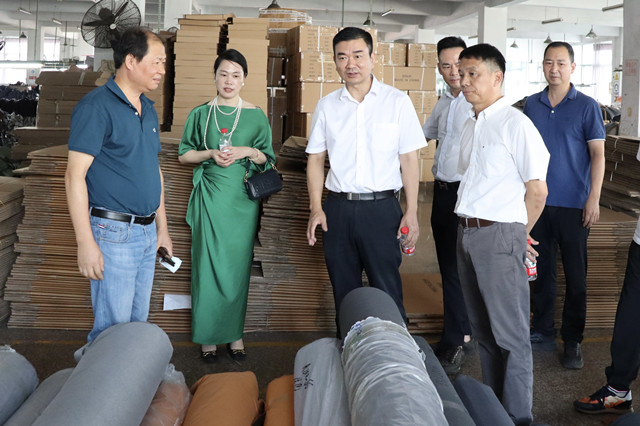 在伟林皮件公司,周胜海一行参观了公司生产车间,与乐清市侨商会副会长、公司总经理陈高林深入交谈,详细了解了公司生产运行、员工管理及产品出口等情况。