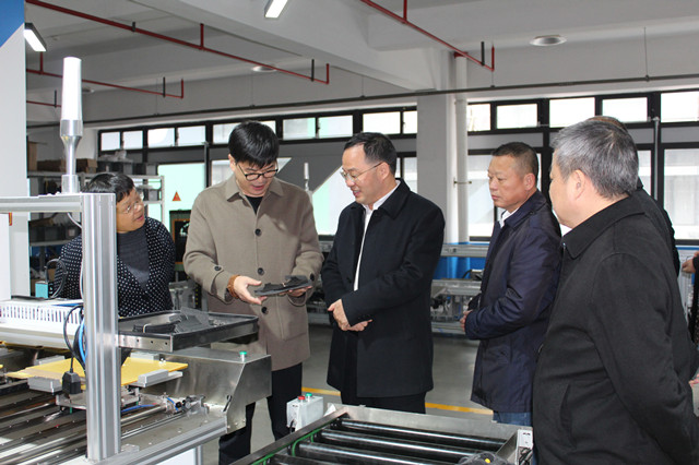李立飞一行首先走访了副会长单位浙江和生荣智能科技有限公司。在董事长阮春晖的陪同下,实地察看了企业研发的智能柔性制鞋生产线,参观了企业产品展示厅、生产车间和研发中心,详细了解了生产过程及企业研发的“凯利伺通”智能柔性制鞋生产线、技术研发创新等方面情况,仔细询问了企业发展过程中存在的困难和问题,帮助企业出谋划策。他勉励企业要充分发挥创新主体作用,不断提高关键领域自主创新能力和核心竞争力,优化智能柔性制鞋生产线的薄弱环节,加快数字化智能化转型步伐,为台州制鞋业实现“机器换人”奠定坚实基础。