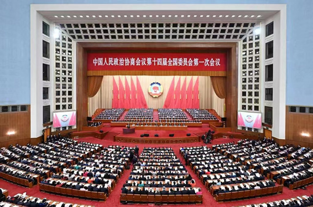 3月的北京,春意渐浓。人民大会堂灯光璀璨,庄重热烈,大会在雄壮的国歌声中开幕。全国政协主席汪洋代表政协第十三届全国委员会常务委员会作工作报告。来自34个界别的2100多名新一届全国政协委员听取和审议政协全国委员会常务委员会工作报告和政协全国委员会常务委员会关于提案工作情况的报告。