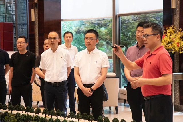 温岭市领导一行来到温岭中心售楼展厅,温岭中心常务副总经理姜冬涛详细介绍了项目的建设情况,以及施工进度。