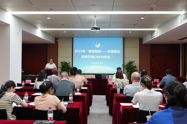 为深入贯彻工信部《“十四五”工业绿色发展规划》及《工业领域碳达峰实施方案》,帮助在甬的侨商投资企业更好了解掌握相关国际市场咨情,推进工业绿色发展,助力工业领域碳达峰碳中和,9月20日,由宁波市委统战部(市侨办)、宁波市侨联主办,宁波市侨商会承办,宁波亿衡碳科技有限公司协办的绿色制造——欧盟碳边境调节税 CBAM 培训在侨商大厦举行。