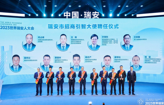会上,会长董邦云、执行会长蔡建林、常务副会长杨志产被聘为瑞安市招商引智大使。常务副会长杨志产作为项目签约代表上台签约项目。常务副会长许曾龙作为宣读人与其他代表共同上台宣读《倡议书》。