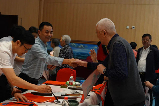 书画家们用手中的毛笔挥洒,为老年人写下了吉祥的福字。每一笔每一划都蕴含着他们对老年人的祝福和敬意。老年人们欣喜地观赏着书画家们的作品,露出了满意的笑容。他们与书画家们交流着,分享着彼此的故事和感受。