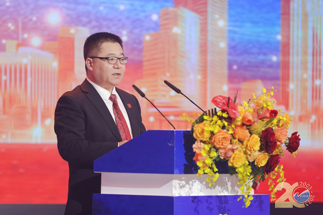 钟关华代表市委、市政府对宁波市侨商会成立二十周年活动表示热烈祝贺,当前宁波正深入学习贯彻习近平总书记考察浙江重要讲话精神,持续推动“八八战略”走深走实,全力争创浙江“勇当先行者、谱写新篇章”的示范样板。希望侨商朋友牢记建会初心、发挥特色优势,当好创新发展的先行者,当好合作共赢的联络员,当好推介宁波的代言人。希望市侨商会以成立20周年为契机,把凝聚侨心、汇集侨智、发挥侨力摆在突出位置,与时俱进做好联侨凝侨、助侨护侨等工作,更好成为广大侨商想得起、找得到、靠得住的知心人、引路人、娘家人。