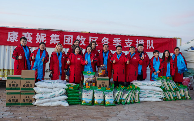 常务副会长、康赛妮集团有限公司董事长薛惊理带领公司牧区冬季志愿队一行10余人,深入内蒙古鄂尔多斯牧区,实地查看康赛妮有机羊绒生产基地的牧区生产、牲畜越冬和牧民生活情况,并送上牧草、粮油、生活用品及印有康赛妮集团logo的羽绒服,让牧区群众在严寒中感受到关怀与温暖。