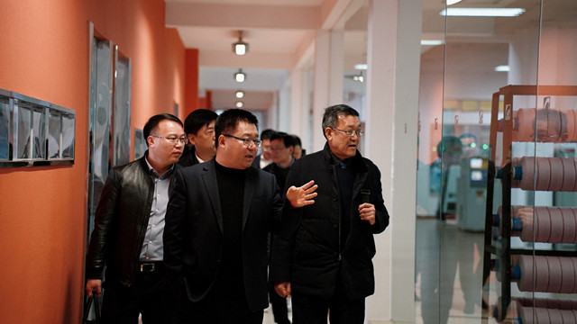 在康赛妮集团,宁波市侨商会会长、集团董事长总裁薛惊理陪同考察团一行先后参观了康赛妮粗纺厂、花式纱线厂和智能工厂。薛惊理详细介绍了智能工厂建设发展、生产计划、应用前景等情况,展示了毛纺行业全球首家智能化、信息化、数字化、无人黑灯工厂独特的生产工艺细节和流程。