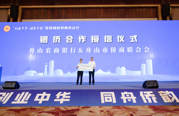 陶性于会长代表舟山市侨商会与舟山农商银行系统签订了15亿元人民币的授信战略协议,着力加大对在舟侨商企业的信贷支持力度,做好侨胞及侨商企业综合金融服务。