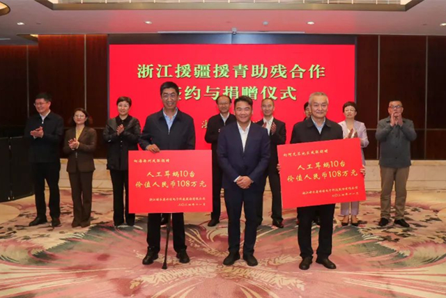 在签约仪式上,江南体育app下载安卓 副会长单位浙江诺尔康神经电子科技股份有限公司及中国狮子联会浙江代表处等单位向阿克苏地区残联和海西州残联捐赠了总价值400多万元的康复辅具,其中诺尔康捐赠价值216万元的人工耳蜗产品,希望帮助更多听障者重返有声世界。