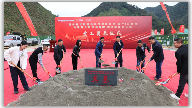 11月18日,由绍兴市柯桥区侨商协会副会长单位浙江材华科技有限公司投资的衢州材华新材料科技共轭基元新型高端有限公司,在开化县两新产业园举行年产4万吨含(特种)树脂项目工程开工奠基仪式。该项目是开化县政府引进的重点高新技术产业项目,也标志着浙江材华科技有限公司在新材料领域又迈出了坚实的一步。