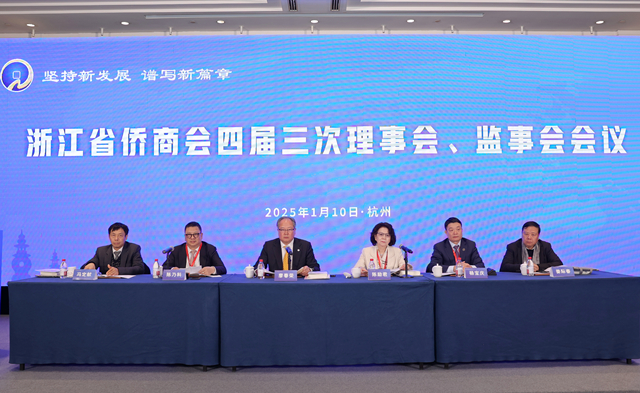 廖春荣会长在工作报告中指出,2024年,是新中国成立75周年,也是省侨商会换届后的第二年。面对错综复杂的国内外经济环境和诸多困难因素,我们以党的二十大和二十届三中全会精神为指导思想,在省委、省政府和省侨务部门的重视关心下,在全体理事会、监事会成员的共同努力下,秉持“服务会员、服务大局”的宗旨,不忘初心,开拓创新,坚定信心、团结一致、攻坚克难,各项事业再创新局面。坚持科技创新,聚力在引领会员企业发展新质生产力上谱写新篇章;紧扣中心大局,聚力在发挥侨商组织优势作用上展现新作为;坚持倾心用情,聚力在精心服务会员上取得新成效;发挥青委会作用,聚力在培育和激励青年侨商创新创业上展示新风采;注重融合提升,聚力在加强全省侨商组织建设上取得新成效;履行社会责任,聚力在参与社会慈善公益事业上作出新贡献;加强信息宣传工作,聚力在彰显侨商组织和侨商形象上展现新风尚;加强学习、创新会务,聚力在侨商会自身建设上呈现新面貌。过去的一年,省侨商会团结一致,共克时艰,开拓奋进,各项工作取得了优异成绩。他强调,2025年是实施“十四五”规划的收官之年,改革发展稳定任务艰巨繁重,国内外风险挑战明显增多。各级侨商组织和广大侨商要充分发挥联通中外、联系广泛的独特优势,为中国企业特别是浙江企业“走出去”,参与“一带一路”建设提供更好服务、发挥更大的作用,为以中国式现代化全面推进强国建设、民族复兴伟业作出新的更大贡献。